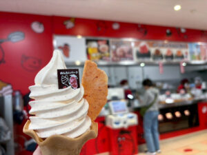 また、個人的にこういったテーマパークで絶対に存在していて絶対に食べたいものといえば、名物を使用したソフトクリーム!もちろんめんたいパークにもありました、つぶつぶめんたいこソフトクリーム!