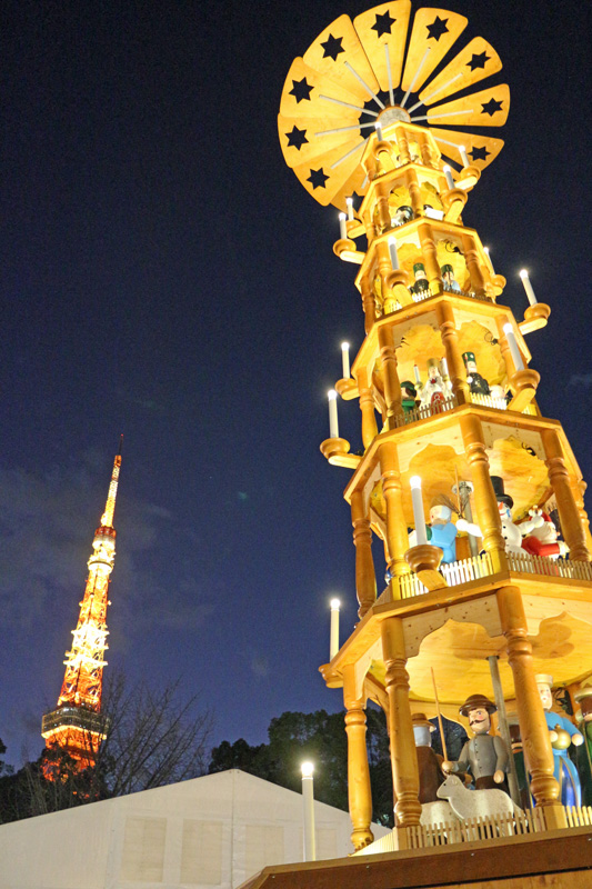 クリスマスマーケットが開催される会場には、「クリスマスピラミッド」と呼ばれる大きなタワーが設置されています。