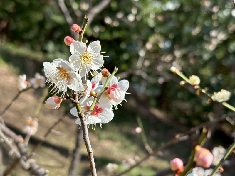 梅は「春告草(はるつげぐさ)」とも呼ばれ、桜と並んで古くから親しまれてきた早春の花。白梅も紅梅も青空によく映えて、とても美しい景色が広がっていました。